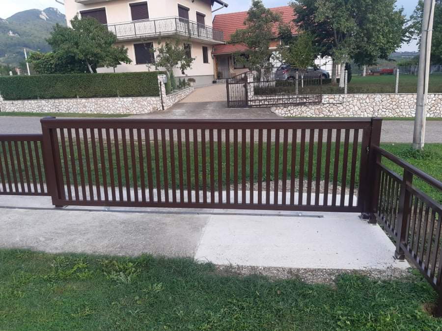 Aluminijske klizne kapije izrađujemo od kvalitetnih aluminijskih profila (šipki) različitih oblika od kojih kombiniranjem dobijamo razne oblike kapija. Proizvodimo razne vrste kliznih kapija sa jednostavnim, čistim i stilskim linijama. Aluminijske kapije su konstruisane da dugo traju, od nehrđajućeg aluminija koji je jak a ujedno i lagan materijal.